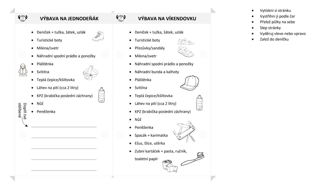 Vylepšete si oddílový deníček o tyto užitečné stránky. Budete potřebovat tiskárnu, nůžky a lepidlo.